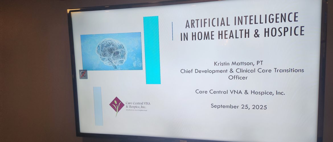 Leominster, MA -September 25, 2025 Care Central VNA & Hospice, Inc. featured at Senior Care Collaborative (SCC) of North Central MA The SCC of North Central MA, led by Michele Morin hosted a presentation by Care Central VNA & Hospice, Inc. on the Use of AI in Home Health and Hospice and to share transition updates regarding the assumption of care and transition of staff due to Overlook VNA’s closure of their VNA and Hospice programs. Care Central VNA & Hospice, Inc.
