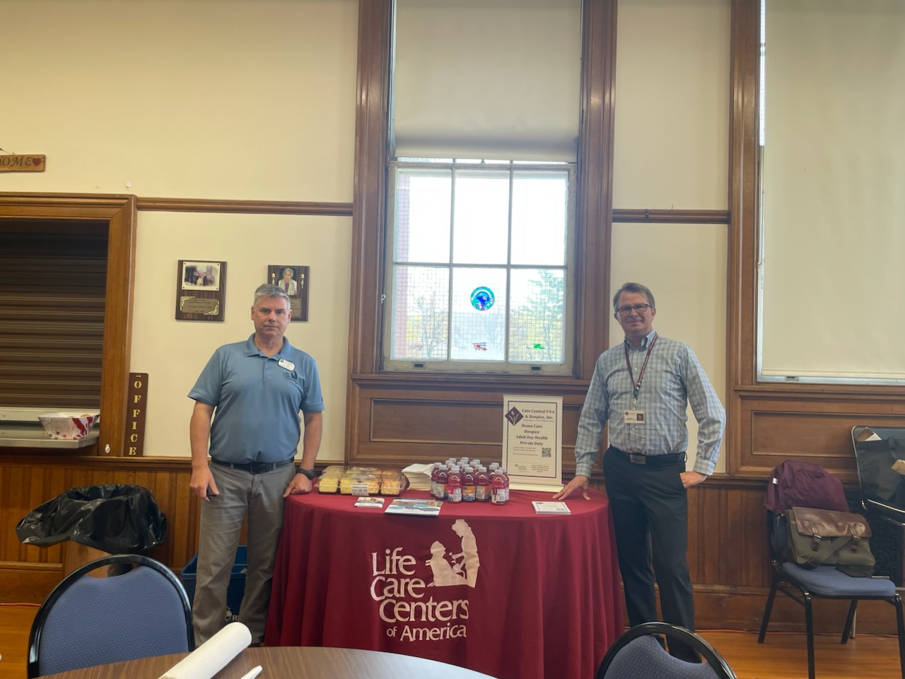 Last week, Community Liaisons Richard Eastham and Terri Saveall were busy at several community events, promoting all Care Central VNA & Hospice, Inc. services and programs. Pictured: Richard Eastham at the Greater Gardner Health and Wellness Fair at City Hall, Rich with Bill Connnors of Life Care Centers of America at the Winchendon Senior Center and Terri Saveall at the Senior Care Collaboration meeting held at The Gables in Fitchburg, MA with guest speaker Donna Bartlett.