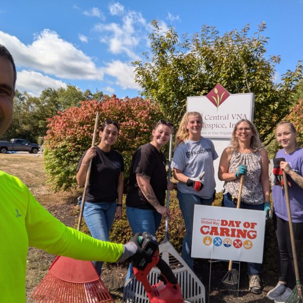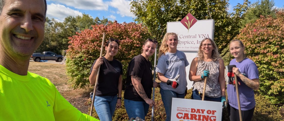 Care Central VNA & Hospice, Inc. was a selected recipient of the United Way of North Central MA’s 2025 Day of Caring. Volunteers arrived bright and early to the 34 Pearly Lane Gardner office location with smiles and tools! The grounds were tended to via weeding, raking, and edging. Care Central’s Ricardo Muchiutti, Chief Compliance & Quality Officer and Pat Lamont, Chief Financial Officer greeted the volunteers and worked alongside in the sunshine! Many hands made for a quick improvement in curb appeal and the morning was enjoyed by all.